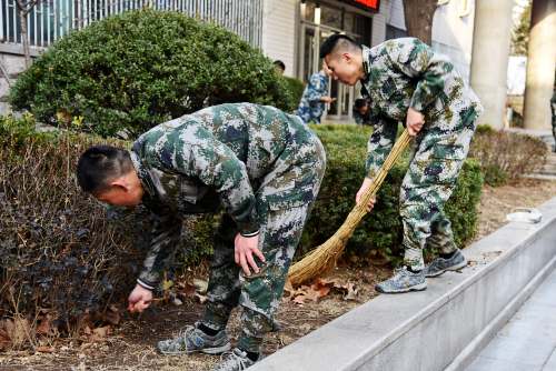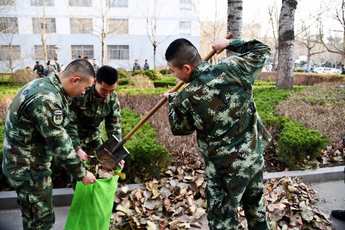 随着一声令下,士官学院各区队迅速行进到预定位置,进入工作状态。有的负责把绿化带里面的白色垃圾、树叶掏出来,有的负责清扫地面,有的负责捡拾垃圾,有的负责运送垃圾,1200余名士官生各司其职,井然有序,校园卫生死角被打扫得一干二净。通过打扫校园活动,展示了士官生不怕苦、不怕累、不怕脏的奉献精神,看到劳动后的干净校园,士官生收获的是幸福,看到校园师生赞许的目光,士官生收获的是骄傲,学雷锋、做雷锋,在实际行动中得到默化,士官生在寒风中劳动的身影也成了校园中最亮丽的风景线。