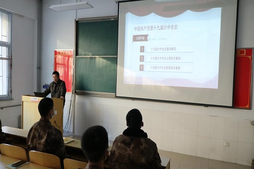 为深入学习贯彻党的十九届六中全会精神,全面解读中国共产党第十九届六中全会公报重点内容。12月29日,士官学院党支部于3号教学楼101合堂开展“学习党的十九届六中全会公报”专题党史学习教育。军事辅导员、入党积极分子参加。