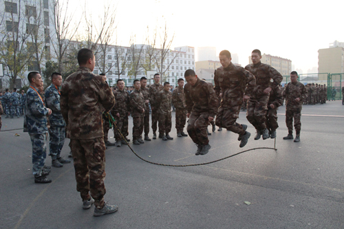 为丰富士官生课余文化生活,增强集体凝聚力,士官学院于11月27日组织开展为期两天的跳大绳比赛。